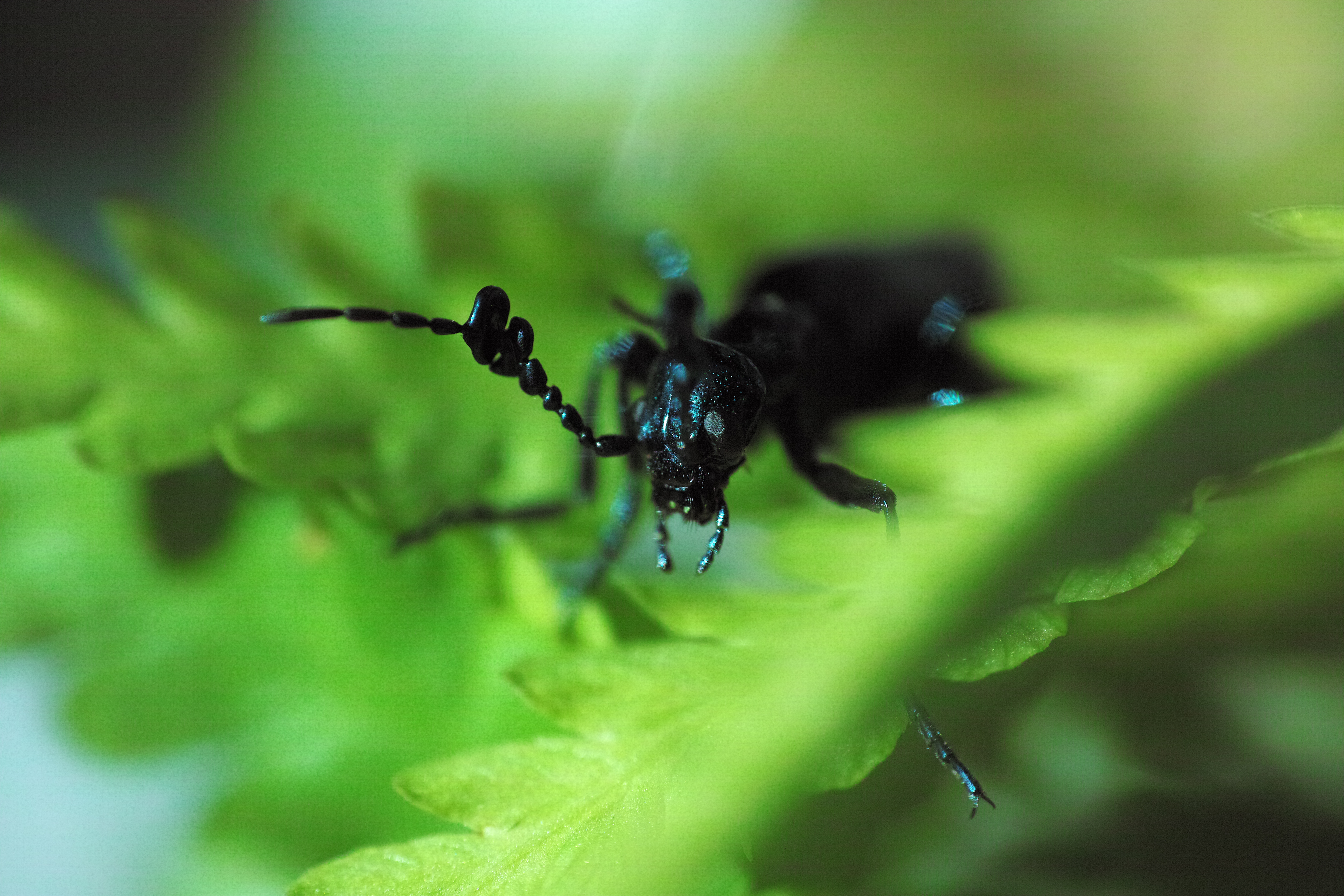 霜月になって帰郷した娘と紅葉狩りと散策で近くの山へ出掛けた時未だ見た事も無い触角を持った真っ黒な蟲さんに出逢った!調べたが良く判らない? 何と何と触角が実に複雑奇怪!!! 普通12節ある触角を形成する節々の形が夫々に違い何とも奇怪!!!各節の役割が違うのだろうか?