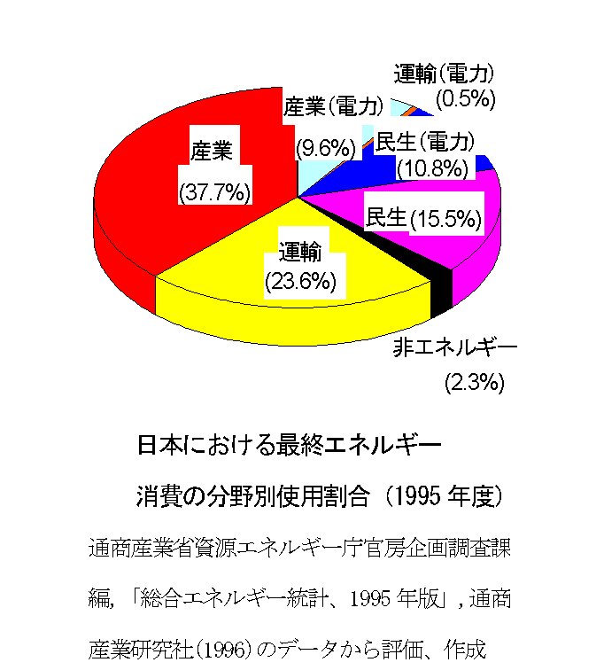 もちろん「運輸」の一部には自家用車の寄与分があるし、「産業」や「非エネルギー」(化学工業の原料)が使っているエネルギーの一部は商品として家庭に分け前が回ってくる性質のものである。当然、私たち一人ひとりが浪費を抑えれば、「民生」として直接家庭で使っている以外にも効果がある。しかし、それでもなお、個々人のエネルギー使用を問題にする以上に、エネルギーを膨大に使ってしか成立しない社会構造、特に産業のあり方を変革しなければ本質的には意味がない。一人ひとりの自覚が社会構造の変革に結びついた時にはじめて、エネルギー中毒社会から抜け出せる可能性が生まれる。