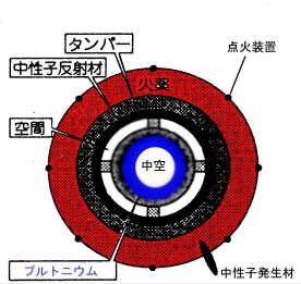 長崎原爆は「fat man」と呼ばれ、燃えるプルトニウム(Pu-239)を材料にして作られていました。このタイプの原爆を爆縮型原爆とも呼びます。