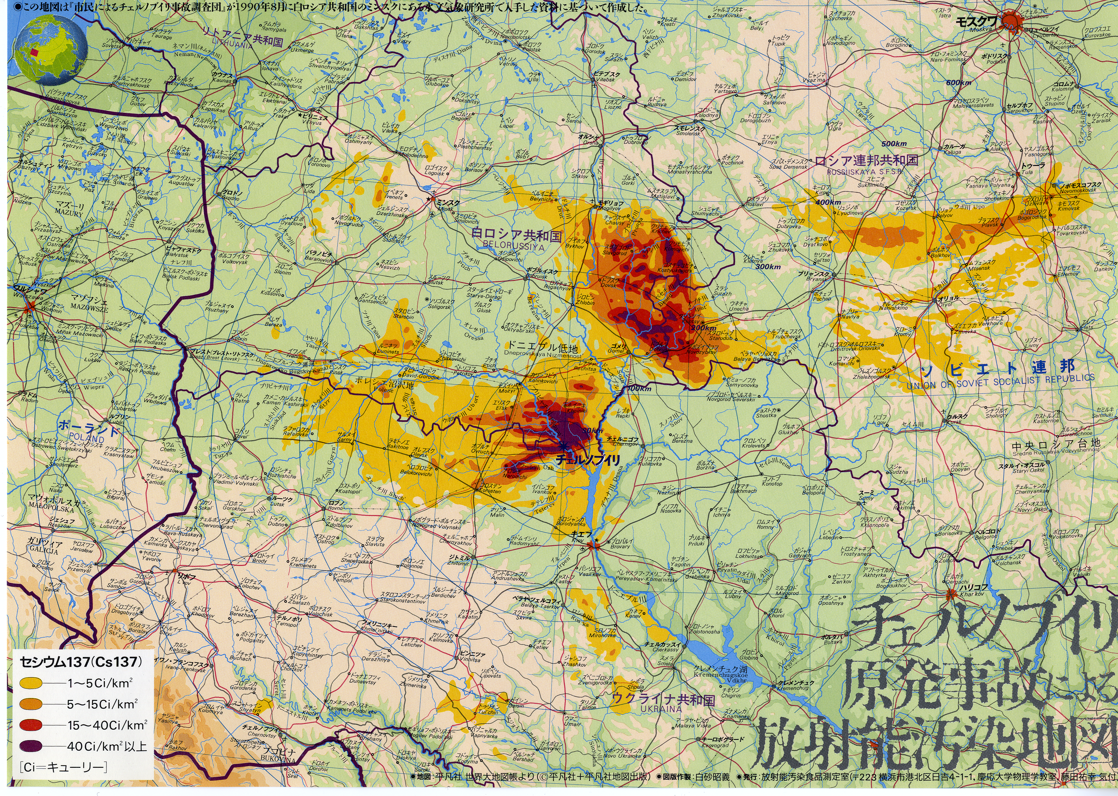 チェルノブイリ事故によるセシウム137による汚染地図