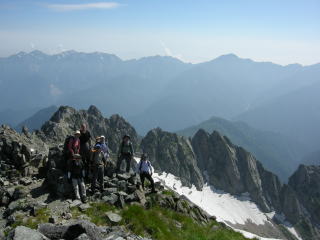 頂上一段下からの八つ峯 (シルエット山脈は後立山連山)
