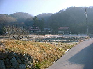 | 少し登ると正面に蓮華寺、そして回りは良く整備された畑が広がっています。この辺一帯は町屋が形成されていたのでしょうか。 | |