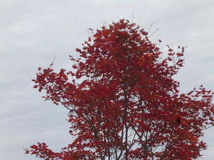 そのすぐ下の斜面の紅葉がみごろとなりました。ここは平成18年の長野県の植樹祭の時に植えられた山もみじと山法師の紅葉です。