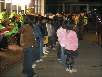 昼間は風が強くて心配したが、夜になって弱くなり一安心。 でも、演奏していて寒かった。 |