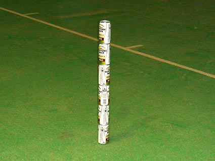 商品は缶ビール。 これを倒した人に缶ビール贈呈。 6本ずつで2回レースを行いました。 |