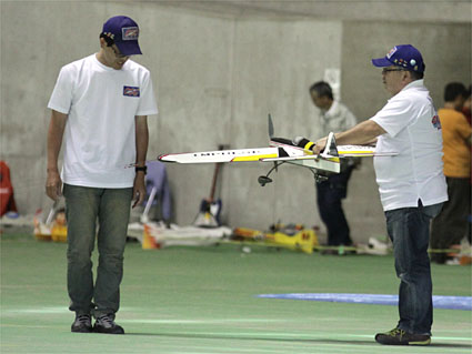 Uコンデモフライトの清水さんは、最近インドア機も始めたそうです。 |